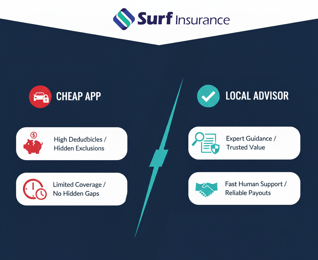 • The Surf Insurance Difference: We provide a no-commitment advisor experience. We help you understand the value of your policy, not just the cost.